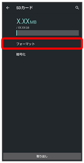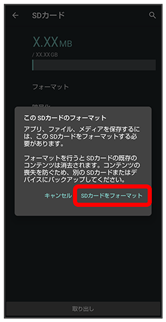 - フォーマットすると、SDカード内のデータがすべて消去されます。SDカードをフォーマットするときは、ご注意ください。