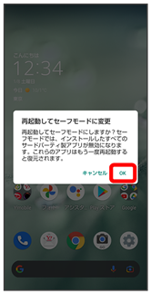 - セーフモード中は、機内モードに設定されます。セーフモードを解除しても、機内モードの設定が維持されますのでご注意ください。