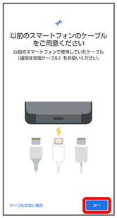 - これまでお使いのスマートフォンのケーブルがない場合は、ケーブルがない場合をタップして、画面に従って操作してください。