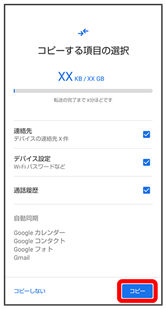 - ほかの端末などからデータをコピーしないときは、コピーしないをタップします。