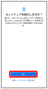 - 初期設定を中断し、あとでリマインダーを受け取るときは、中断し、リマインダーを受け取るをタップします。