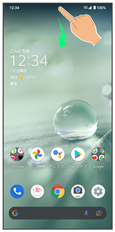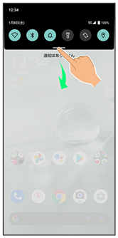 - 通知パネルが開いてない状態で、ステータスバーを2本の指で下にフリックしても、クイック設定パネルが表示されます。