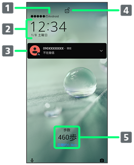 | 1 | ロック画面にテキストを追加を設定しているときに表示されます。詳しくは、「ディスプレイ設定」を参照してください。 |