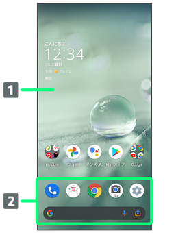アプリのショートカットやフォルダを自由に配置できます。ホーム画面からすばやくアプリを起動したり、Google™ 検索バーを利用できます。