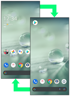 画面の自動回転を有効にしているときは、本機を横向きに回転させると、自動的に表示画面も横表示に切り替わります。詳しくは、「クイック設定パネルの見かた」、「ディスプレイ設定」、「ユーザー補助」を参照してください。