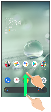 ロック画面では、画面ロックを解除したり、画面左下から斜め上にフリックすることでGoogle アシスタントを、画面右下から斜め上にフリックすることで