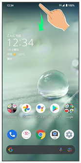 - 通知パネルが開いてない状態で、ステータスバーを2本の指で下にフリックしても、クイック設定パネルが表示されます。