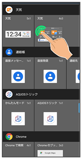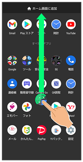 - アプリ一覧画面でアプリをロングタッチし、「ホーム画面に追加」までドラッグ
