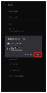 本機やほかの携帯電話でSDカードに保存(バックアップ)した電話帳データを読み込み(インポート)できます。