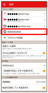 • Y!mobile メール設定画面で、Y!mobile メールのアカウントをタップ