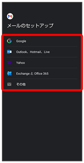 (Gmail)を起動すると、アカウント設定画面が表示され、設定操作を行うことができます。