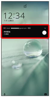 新着メールを受信すると、ロック画面に新着メッセージ通知が表示されます。