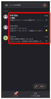 - 新着メールが2件以上あるときは、メール一覧画面が表示されます。確認する新着メールをタップしてください。