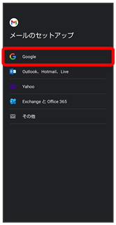 - すでにGoogle アカウントでログインしている場合は、アカウント設定画面は表示されません。別のアカウントを追加するときは、「アカウントを追加する」を参照してください。