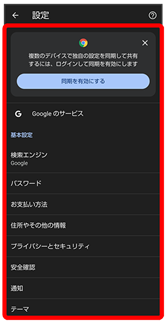 | Google のサービス | Googleのサービスを利用するかどうかを設定できます。 | |