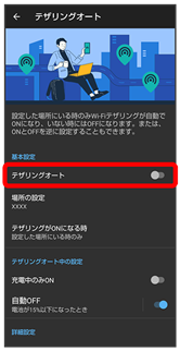- テザリングオート画面で「自動OFF」の