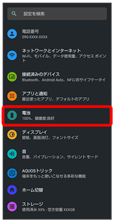 | XX% | 電池残量と電池の状態などを確認できます。 | |