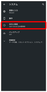 言語と入力や日付と時刻、バックアップ、リセットなどについて設定できます。