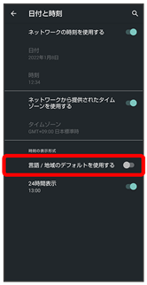 )が切り替わります。 - 言語/地域のデフォルトを使用するが無効の場合は、24時間表示をタップするたびに、24時間表示(
