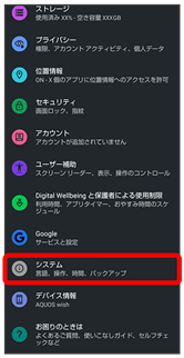 | 言語と入力 | 表示言語や文字入力に関する機能を設定できます。 Gboardの設定について詳しくは、「Gboardの設定を行う」を参照してください。 |