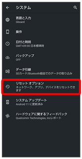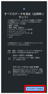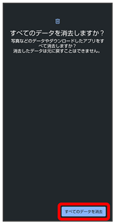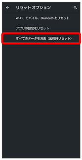 - すべてのデータを消去(出荷時リセット)を行うと、内部ストレージのデータがすべて消去されます。必要なデータは事前にバックアップをとることをおすすめします。