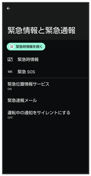| 緊急位置情報サービス | 緊急時に現在地を送信するかどうかを設定します。 | |