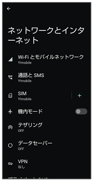 | Wi-Fi とモバイルネットワーク | Wi-FiがWi-Fi とモバイルネットワークに変更されます。 画面右上に 接続中のモバイルネットワークが表示されるようになります。 Wi-Fi の使用がWi-Fiに変更されます。 Wi-Fi 設定がネットワーク設定に変更されます。 Wi-Fi データ使用量がモバイルデータ以外の通信量に変更されます。 |