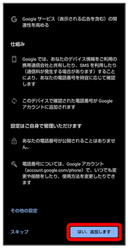 • 電話番号の追加をしないときはスキップをタップします。