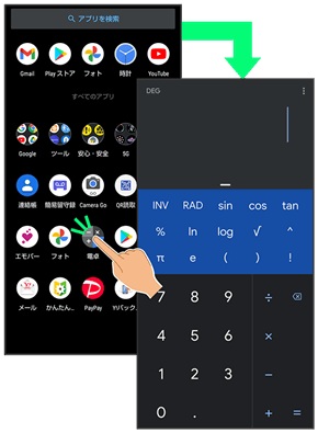 項目やアイコン、画面のボタンなどをタップすると、該当する操作の画面に移動します。