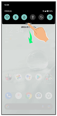 • 通知パネルが開いてない状態で、ステータスバーを2本の指で下にフリックしても、クイック設定パネルが表示されます。