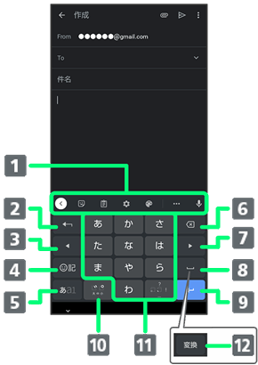 1表示するアイテムを変更することもできます。詳しくは、「ツールバーについて(Gboard)」を参照してください。