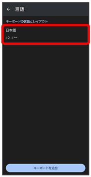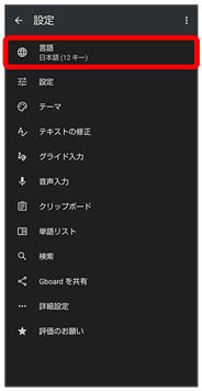 | 言語 | キーボードを切り替えることができます。 詳しくは、「キーボードを切り替える(Gboard)」を参照してください。 |