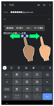 12キーで入力するとき、キーをくり返しタップすることなく上下左右にフリックすることで、入力したい文字を入力できます。