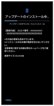 • システムアップデート中も他の機能を使用できます。ただし、システムアップデートの通知後10日間は、システムアップデート中に他の機能を使用していると、アップデートのインストールが一時的に停止されます。再開をタップすると、インストールが再開され、他の機能も使用可能になります。