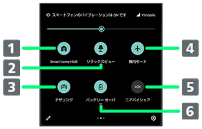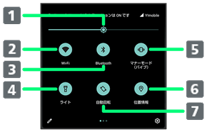 クイック設定パネルでは、アイコンをタップして機能のON/OFFなどを設定できます。