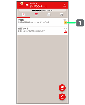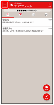 • 相手を限定せずに、迷惑メール以外の受信したすべてのメールを確認するときは、すべてのメールをタップします。
