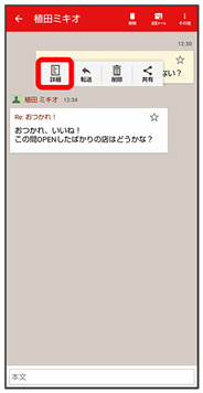 • ↓電話帳に未登録の宛先のメール送受信画面で宛先グループ名をタップ