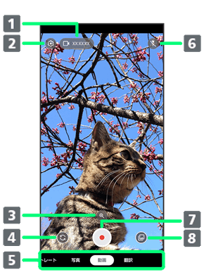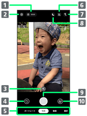 写真撮影画面(アウトカメラ/インカメラ)の見かた