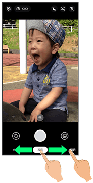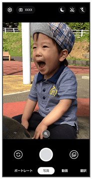 左右にドラッグして撮影モード(ポートレート/写真/動画/翻訳)を切り替えます。