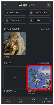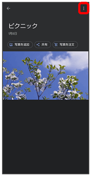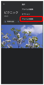 本機のカメラで撮ったり、ダウンロードしたりした写真や動画をアルバムで管理することができます。また、メールやBluetooth®を使用して、ほかの端末やコンピュータへ写真/動画を送信することもできます。