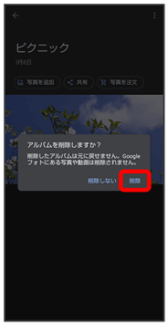 完全に削除/完全に削除(X 個)と操作すると、写真や動画をすぐに削除することができます。