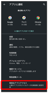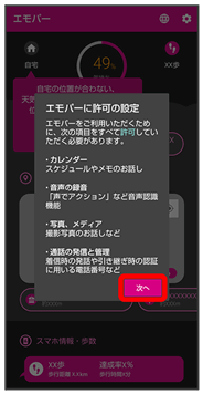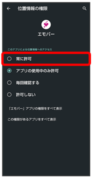 アプリをはじめて起動したときは、動作について設定が必要になります。アプリによって、表示される確認画面の種類や内容は異なります。ここでは、「アプリに必要な許可」「電池の最適化」の2種類の確認画面について説明します。