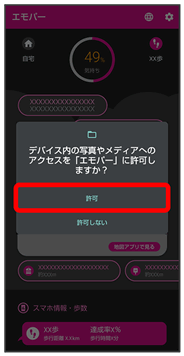 アプリが本機のデータやカメラなどを利用することを許可します。