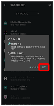 電池の最適化を行うと、画面消灯中(充電中を除く)はアプリが動作しないように設定されます。