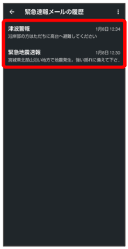 以前に受信した緊急速報メールを確認する