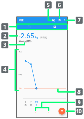 からだメイト画面(体重表示)の見かた