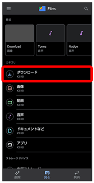• ↓ダウンロード画面で、ファイルをロングタッチ