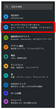 | Wi-Fiテザリング | Wi-Fi接続でテザリング機能を利用するかどうかや、Wi-Fiテザリングを利用する際のネットワーク名やセキュリティなどについて設定します。 | |