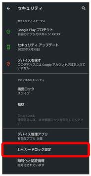 | SIM カードロック設定 | SIMカードのロックやSIM PINの変更を行います。 | |