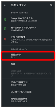 画面のロックや暗証番号など、セキュリティに関する設定ができます。